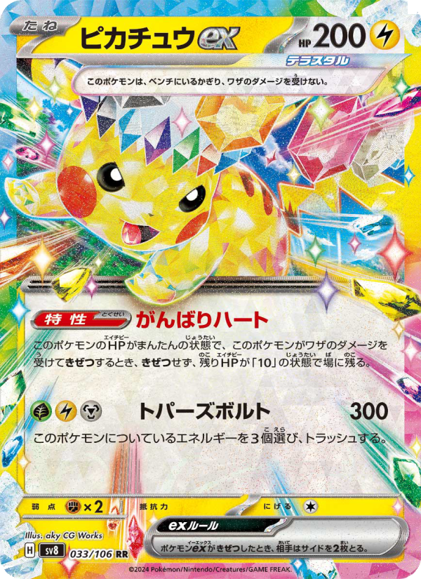 ピカチュウex()は、超電ブレイカー収録のDouble rareです。 イラストはaky CG Works氏が担当しています。